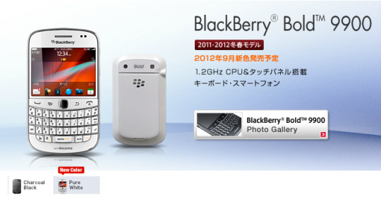 NTTdocomoから発売されているBlackBerryBold9900(以下BBB9900)に新色が追加される模様です。